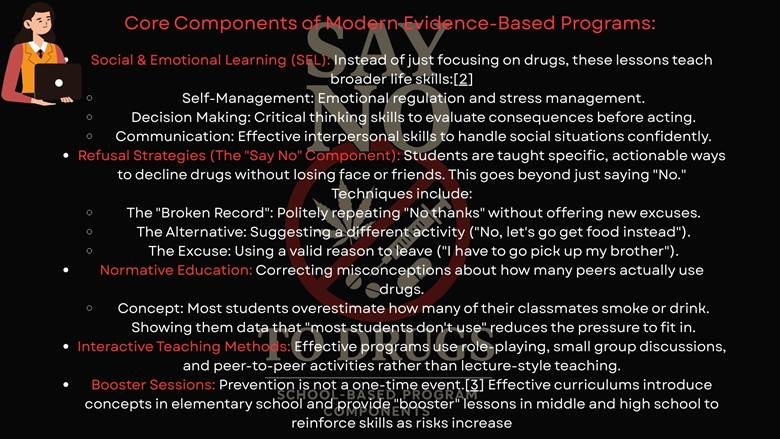 Knowledge Plus Skills: Simply knowing drugs are harmful isn’t enough. Effective programs teach practical skills for resisting peer pressure, managing stress without substances, making thoughtful decisions, and building self-esteem that doesn’t depend on peer approval.