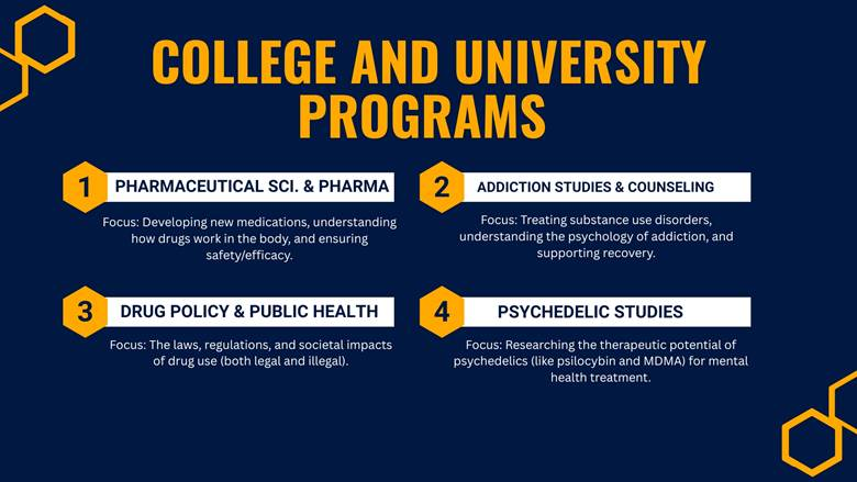 Drug awareness programs educate people about the risks of substance abuse and teach prevention skills. They help reduce addiction by stopping drug use before it starts, especially among youth.
